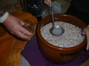 「さっきイスキアから帰ってきたばかりなんだ」という岩手の友人Aくんからのメールが届いたのは、一年前のこと。初女さんと親しい人を介して訪ねていったと聞き、私も「連れてってーっ」と騒ぎまくりました。強引だったけれど、願わばかなう。友人たちに案内され、すぐにお会いできることになりました。そしてその時に持参したのが、私の作った『ありが稲(とう)』の黒米を元に、案内してくれた友人KちゃんとA家が協力して作ったドブロク。
