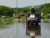 さて師匠のY氏の元で田圃作業を一から始めてみると、そこには、未知の世界へ飛び込んだ時のラリー参加と同じ様な興奮がありました。耕して「ほお〜っ」。育苗箱に種籾を蒔くだけで「へえ〜っ」。苗が育って「おお〜〜っ!!」。やるならば自然農でと思っていた私なので、無農薬無化学肥料には拘りましたが、まずは一通り一般的なやり方を学ぶことにしました。そして予想や下準備も相談しつつ組み上げていきましたが、戦略は「みんなで楽しく」と決定。実は最初は一人でコツコツやろうと思っていたものの、HPで「田植えやるよ〜!」と書いたところ、なんと全国から百人もの人が集まってしまったのです。私の意図と意志を飛び越えて、「やってみたい」という反応は大きく、そのことにも驚きました。でもこれも世の中の流れということが分かります。「猿の芋洗い」で考えると、一人(私)がやりたいと思ったということは、あちこちで同じ様なことに興味を持つ人が増えていると言うこと。同じ頃バイク仲間のマイク真木さんも千葉で米作りを始めたり、仕事場でテリー伊藤さんに逢った時には、「農業やってるの? やっぱり今からはそれだよね。」と賞賛されました。農業は最先端。そんな思いで私の稲作が始まりました。