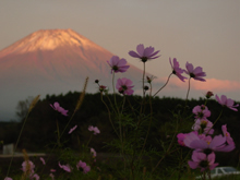 | 「今、見送ったよん」。10月6日、朝7時半。佐藤初女さんとイスキア御一行様を、静岡駅で見送ったレイコから電話が入りました。そうか、お帰りになったか。あっという間、でもムチャムチャ濃い時間を思い出し、またしてもウルウルしながらふと富士山を見ると、頂上にうっすらと何かが・・・ん、もしや。 寝起きでぼけた目をこすり、よくよく見ると、まごうことなき雪です。ほえ〜、富士山に雪が降ってるぅ〜。もっとよく見ようとしたら、あっという間に雲が頂上を覆い尽くしました。なんだか、初女さん達との別れを惜しんでの富士山の涙のようです。そんでもって、私に見られて恥ずかしくて顔を隠したように思えました。 次に富士山が顔を見せたのは昼過ぎです。見事なくらい真っ白な帽子を被っていました。6時間足らずの間に、こんなに降ったのね。いっぱい涙を流したのね。 この日、西の毛無山の空は真っ赤に染まりました。が、いつもなら同じく赤くなる東の富士山は、最後まで白いままでした。ちょっと不思議な夕方でした。 (いすわりまりこ)