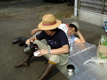 6月7日、とってもいい天気、梅雨前の爽やかな風がほほを撫でていきます。うーん、さわやかー。本日は「ヒエ取り」には最高のコンディションじゃないですか。さあ、頑張って楽しみましょ〜! 「へーい。ヒエ取りは大好きだべ」(はんちゃん)「オレ、ヒエ取り久しぶりだなあ」(まさみっちゃん)「人生に悩んだらヒエ取りです。LOVE ヒエ取り!」(まりこ)。はい、フェアリーテールの面々はやる気満々です。てなわけで、みんなで出資してみんなでお米作りをする「「富士山麓アイガモ農法の会」でやっている共同田んぼへ出動です。