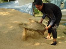 『よく頑張ったね』と語りかけているようなレイコの表情。レイコと稲の図は、母と子供の図のようです。