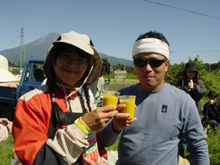 青見牧場の佐野さんが作ってくれた、カボチャの冷たいスープ。のどごしのなめらかさ、絶妙な味、ファイト一発元気が出ます。田んぼメイトの富士夫ちゃん、この後の力仕事ヨロシクね! |