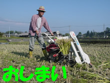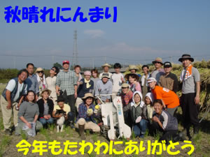 最後のシメは、やっぱり田んぼ部長。刈り終わった瞬間、参加者みんなから自然に拍手が起こりました。嬉しい光景です。 |