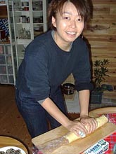 | 均等に伸ばしたら、端から丁寧に巻いてカタチを整える。 |