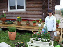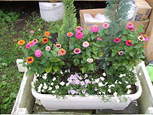 見兼ねて・・・園芸担当に自らなってくれた山下まちこさん。いつもかわいいお花、ありがとうございます。 |
