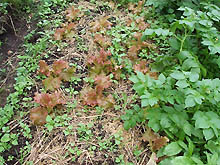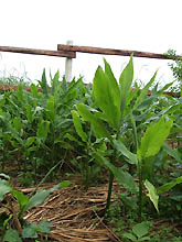 | 去年の名残りの茗荷(みょうが)たち。手間要らずの優秀な野菜だなー。京子もこれぐらい成長してくれればいいのに・・・by師匠。って感じ?? |