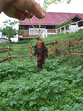 朝方こっそり、ジャガイモに埋もれていた人参くんを救出!あー自然よ、ありがとう! |